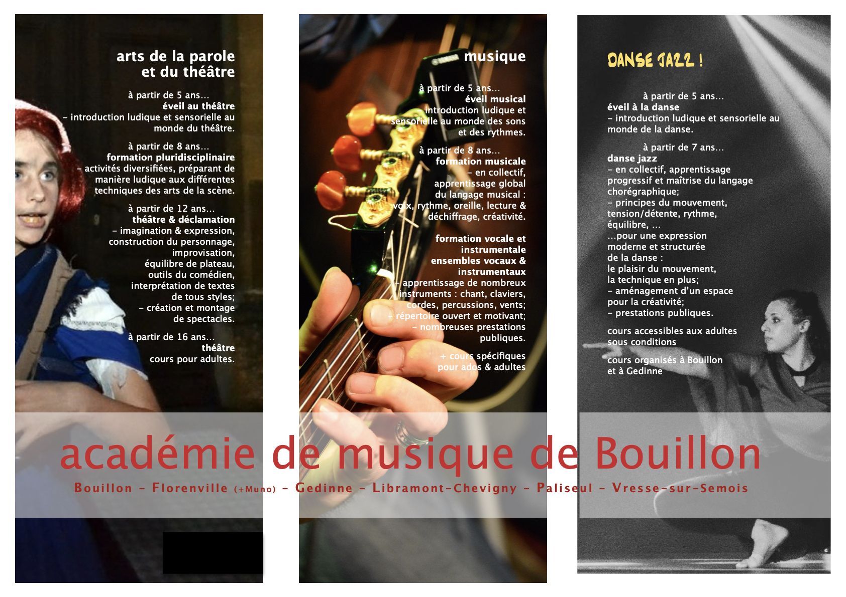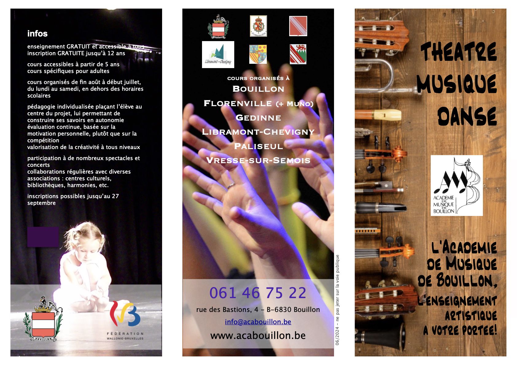 L’académie de musique de Bouillon organise des cours dans 6 communes : Bouillon, Florenville (+ Muno), Gedinne, Libramont-Chevigny, Paliseul et Vresse-sur-Semois.