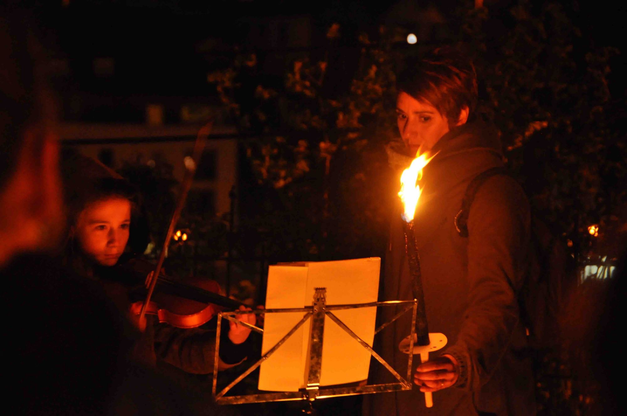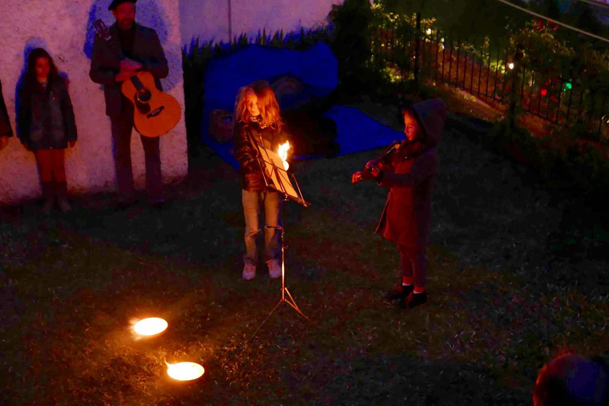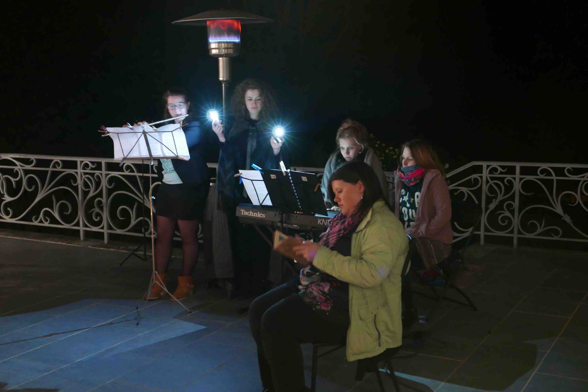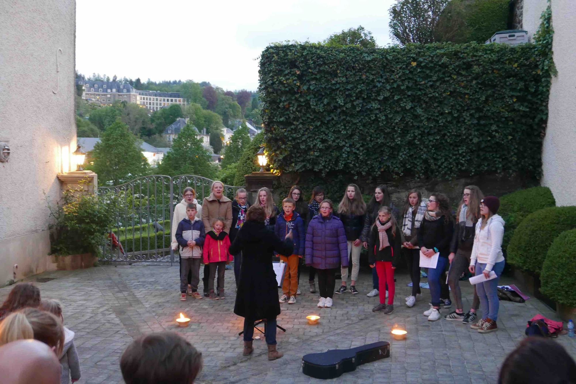 Avec toutes les précautions nécessaires, les petits chanteurs sont dans la cour centrale, et le public aux fenêtres…