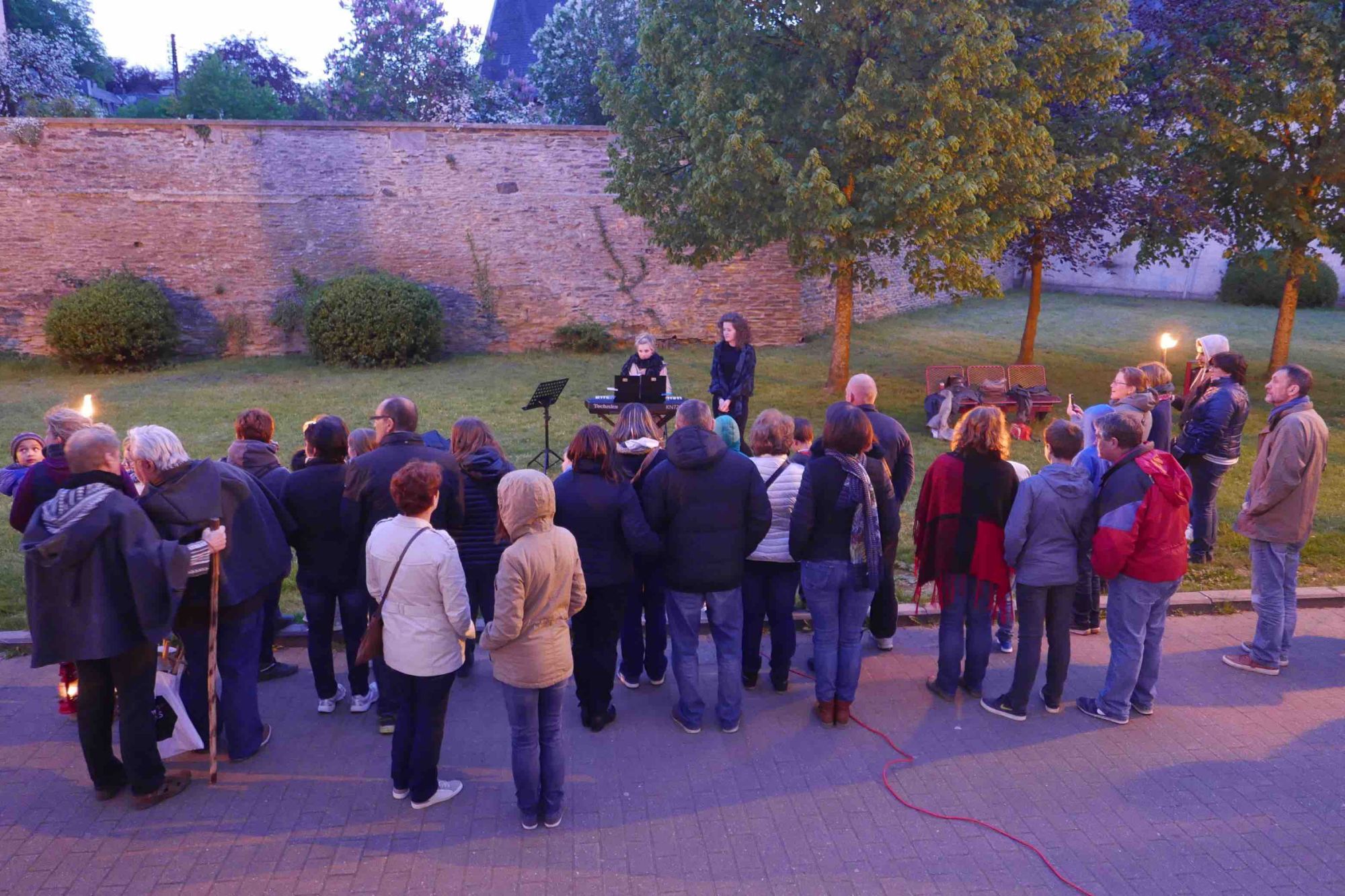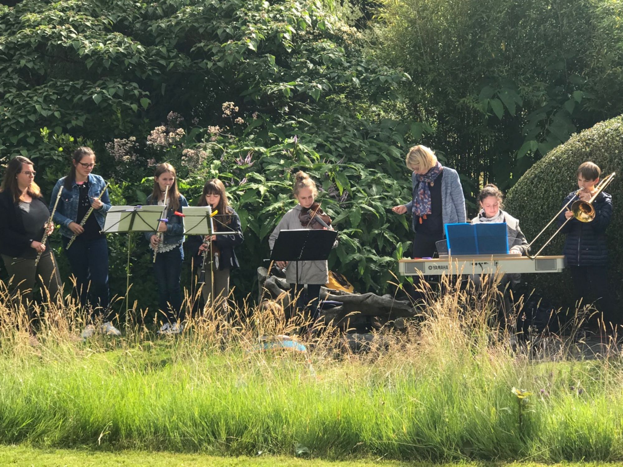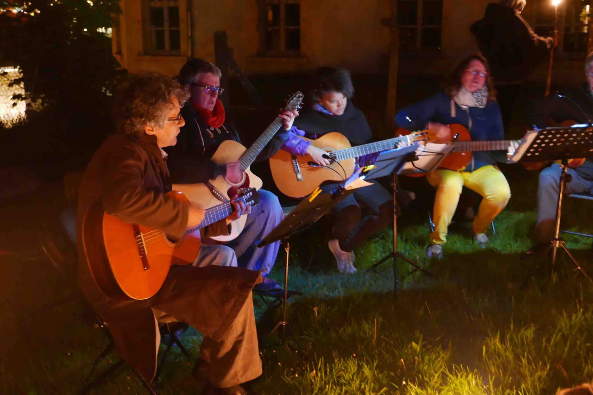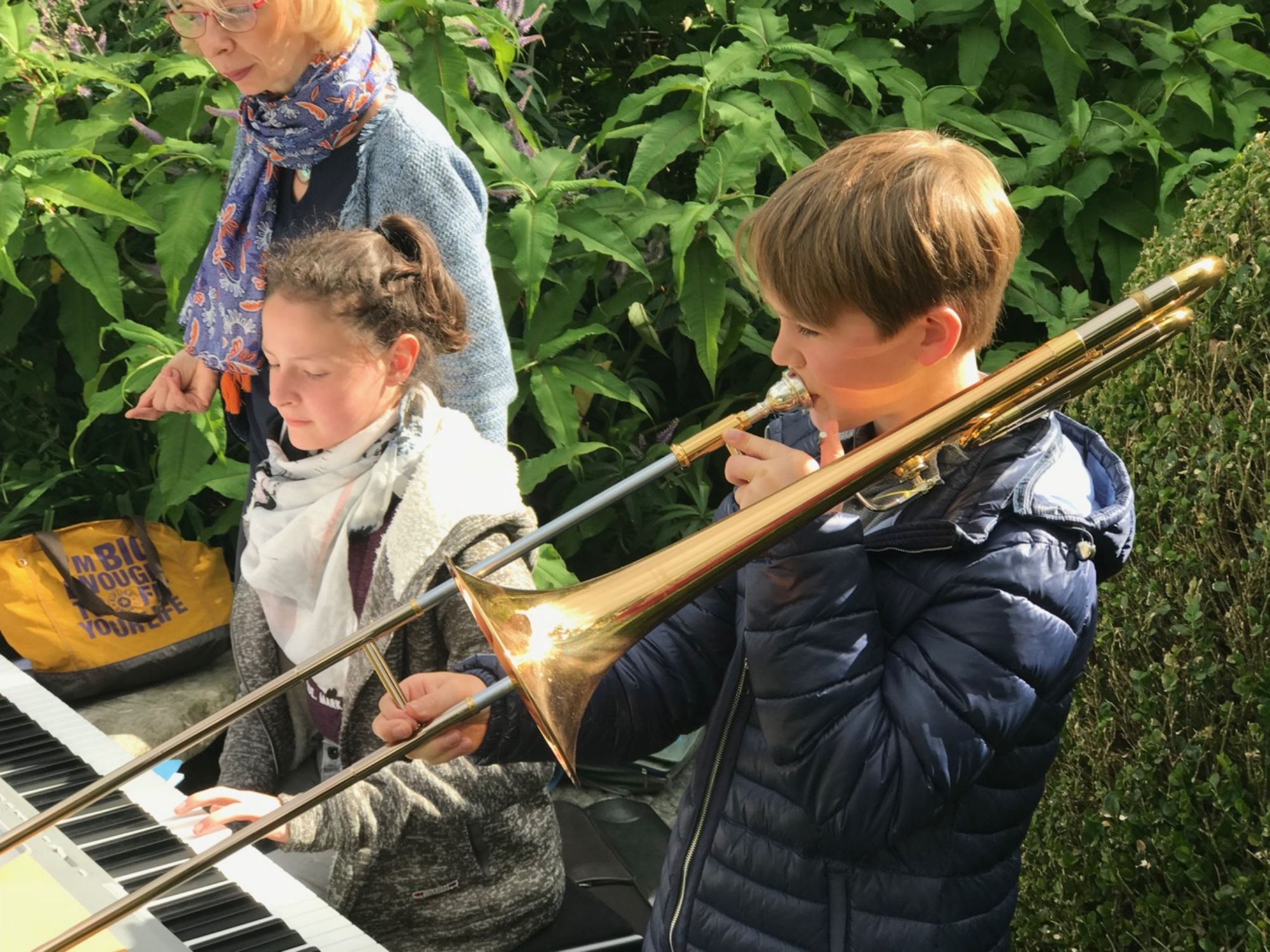 Avec toutes les précautions nécessaires, les petits chanteurs sont dans la cour centrale, et le public aux fenêtres…